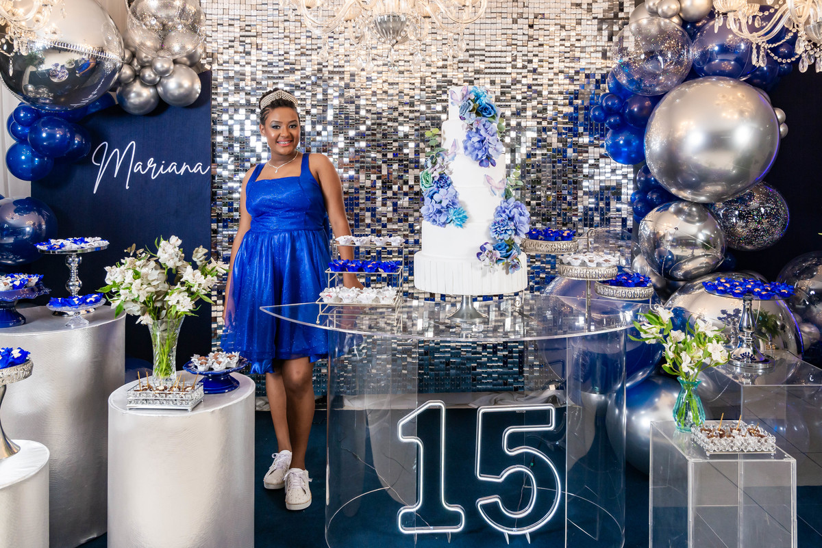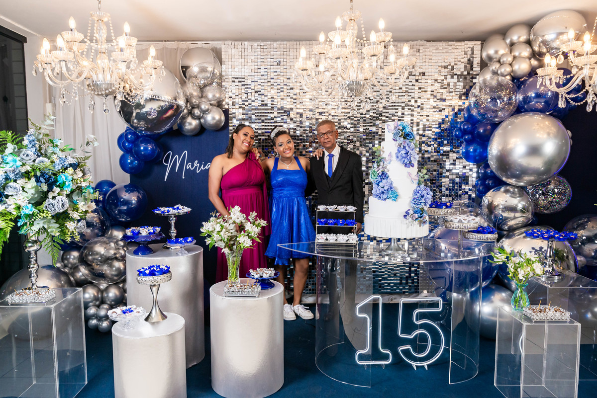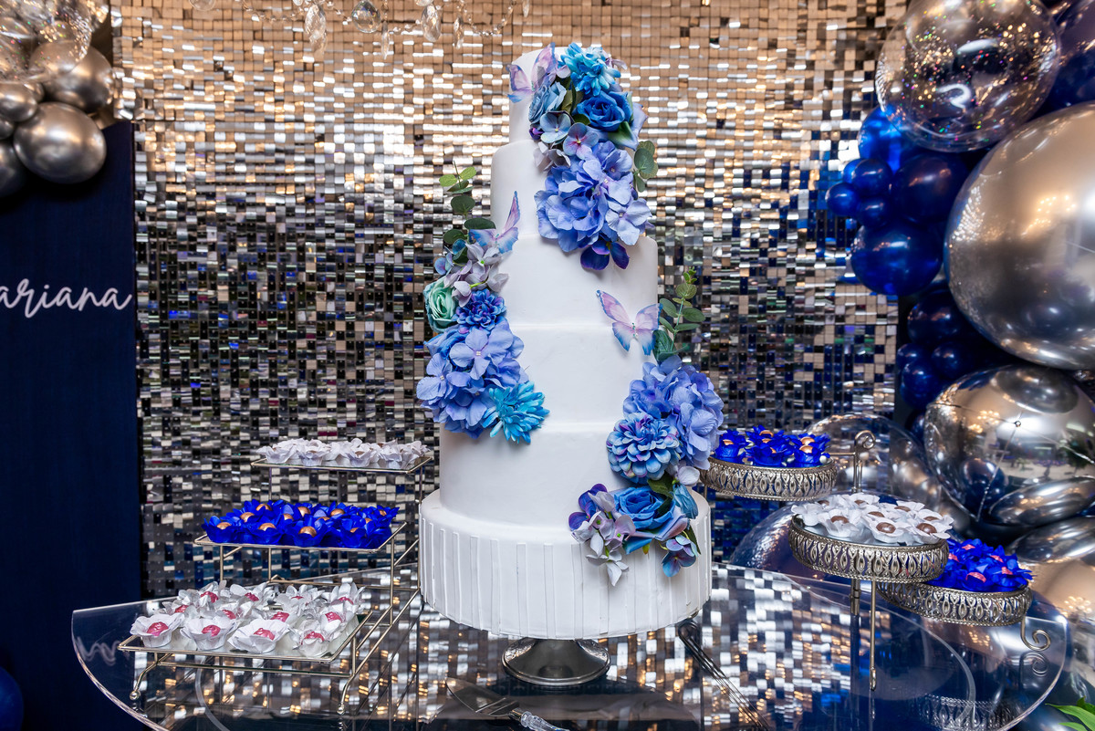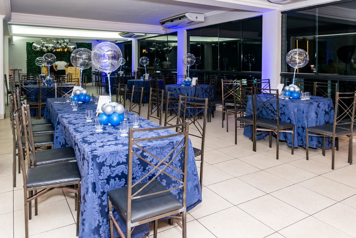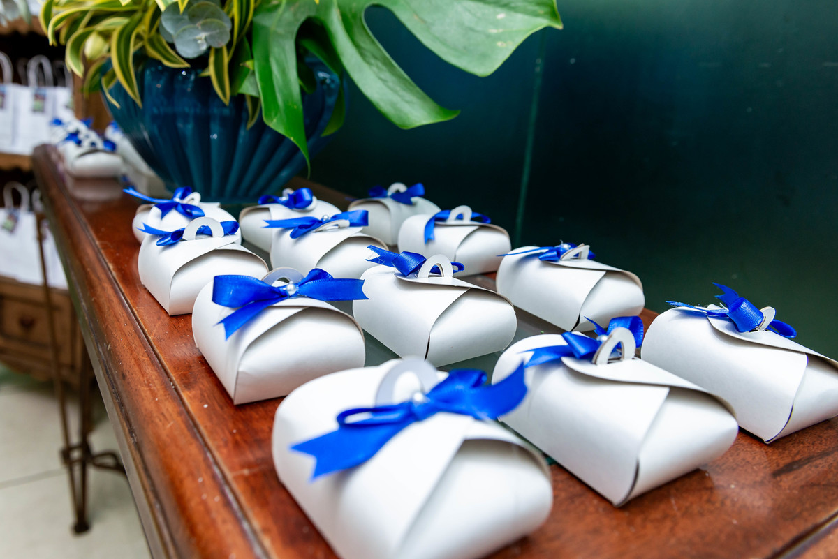 Desde a decoração encantadora, em tons de azul e prata, até cada detalhe cuidadosamente preparado, tudo refletia a essência e a beleza desse dia tão esperado.