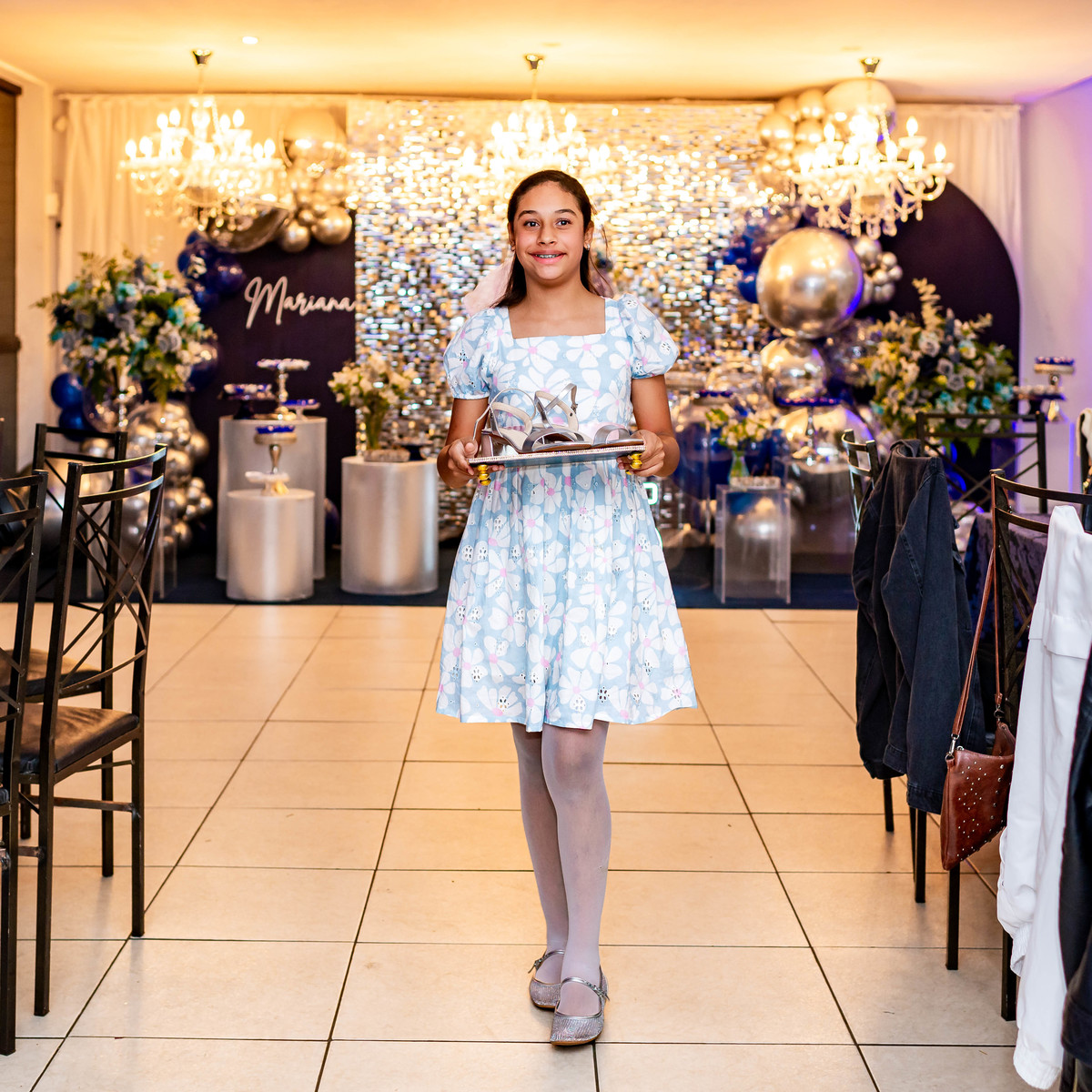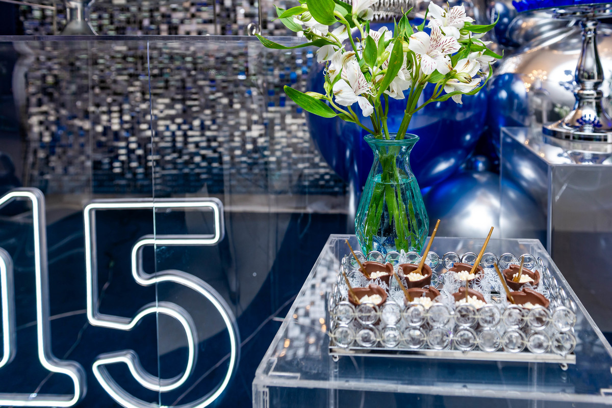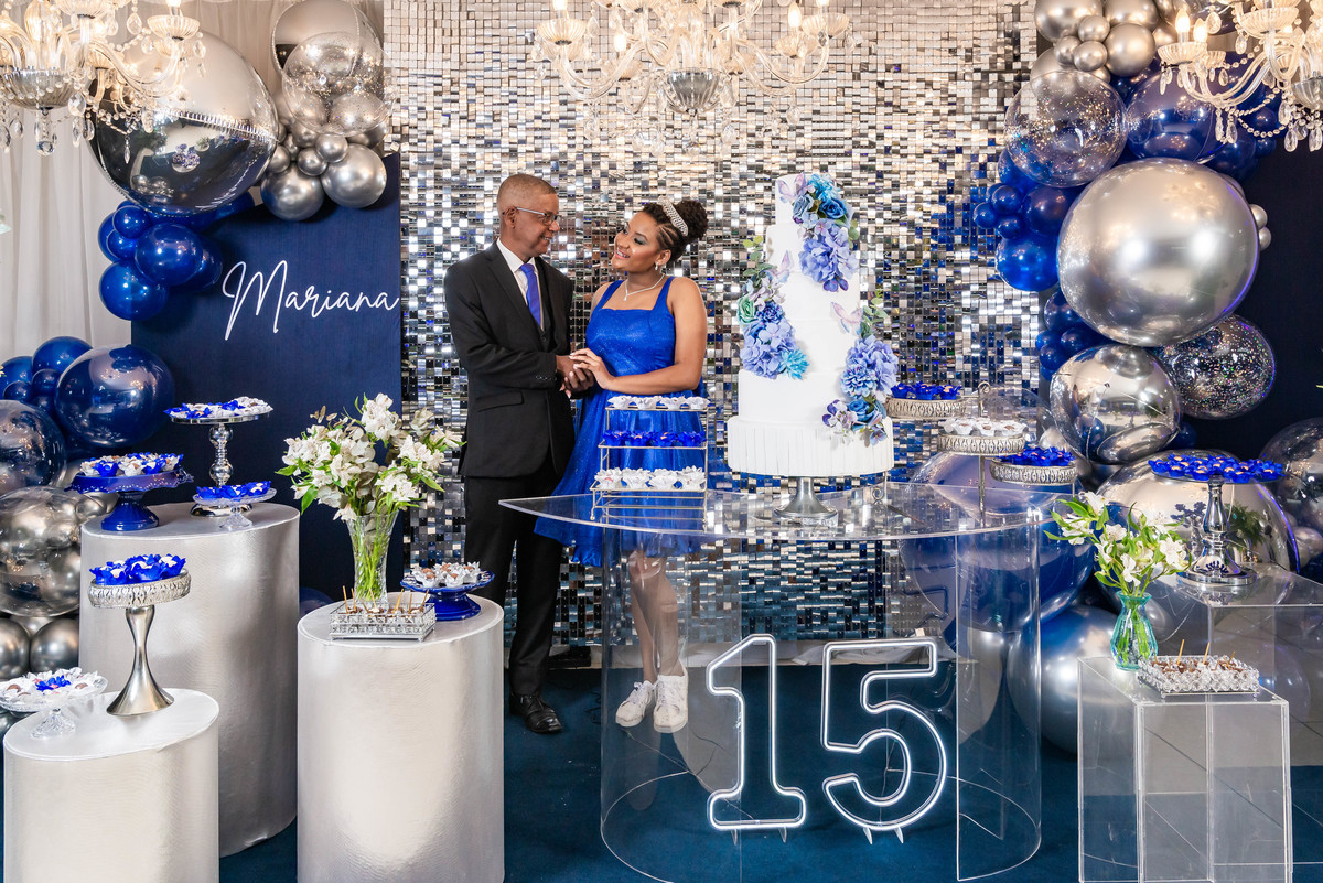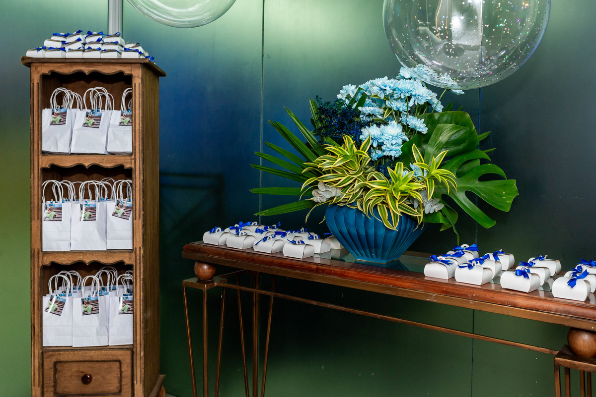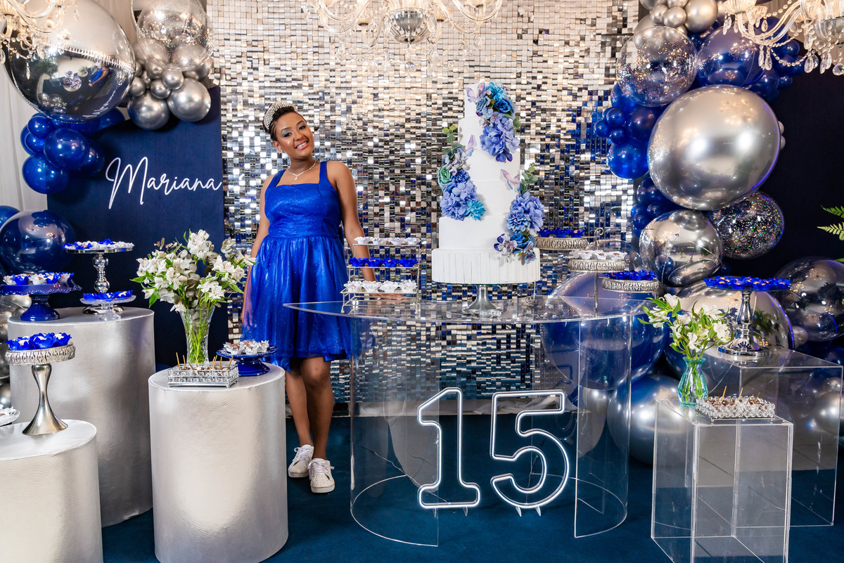 Desde a decoração encantadora, em tons de azul e prata, até cada detalhe cuidadosamente preparado, tudo refletia a essência e a beleza desse dia tão esperado.